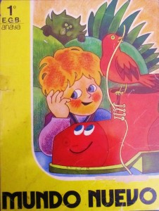 El título hace honor al libro ya que era el primer libro que teníamos que leer en primero de E.G.B. y que debido a su contenido, así como a sus maravillosas ilustraciones, te hacía viajar a un “MUNDO NUEVO”. Un mundo abierto a la lectura, a la imaginación, a la aventura… Posiblemente este ha sido uno de los libros más importantes de mi vida, y de hecho, es uno de los pocos que conservo de mi etapa infantil. Es un libro adelantado a su tiempo, por su formato narrativo novelado, por sus descripciones, por sus dibujos increíbles y por su temática de aventuras para despertar la imaginación de los niños. Además está realizado con mucho cariño, algo que se puede ver en el tratamiento de los contenidos. Es una pena que no haya constancia en el mismo de quienes son sus autores, ni tampoco haya referencia al ilustrador. Esta es la única objeción que se puede sacar de él, pero por entonces no estaba muy reconocido ser el autor de un libro de texto y menos dirigido a niños.